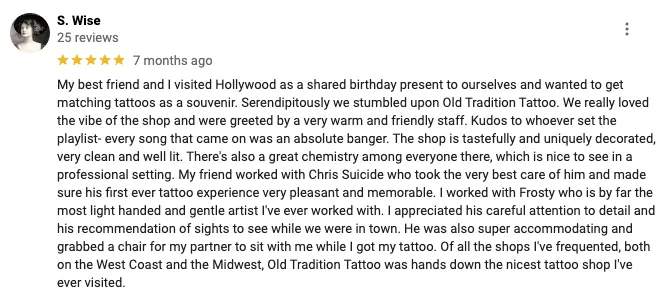 Welcome to Old Tradition Tattoo, your premier custom tattoo shop conveniently located at 6548 Hollywood Blvd in Los Angeles, CA.